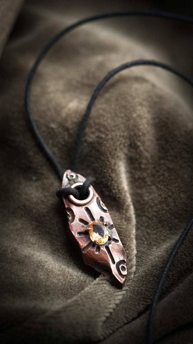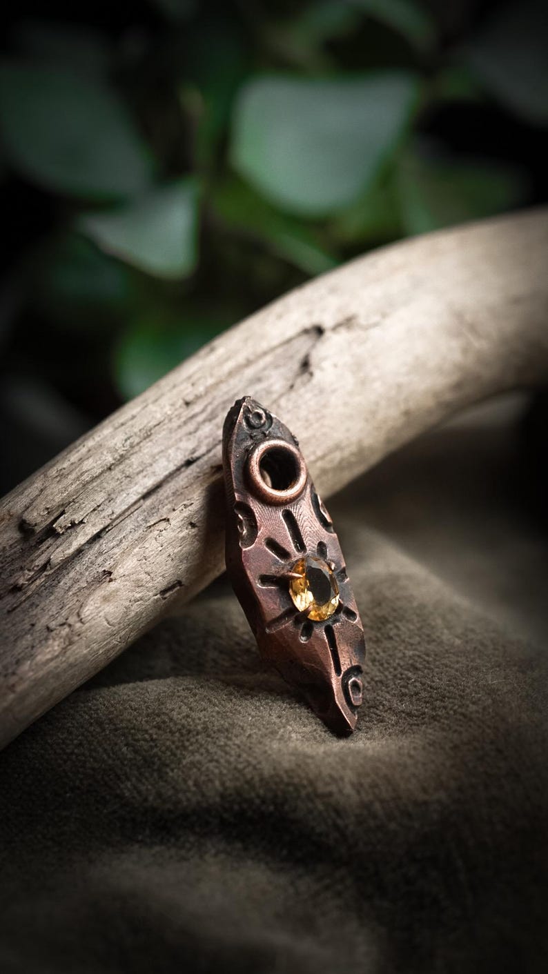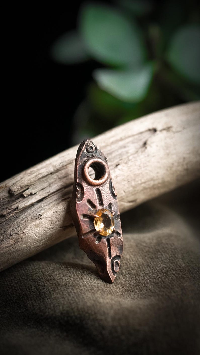 Dieser Anhänger aus Kupfer wurde mit großer Sorgfalt und Liebe zum Detail entworfen und in aufwendiger Handarbeit gefertigt.
